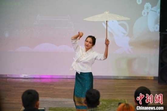 圖為泰國留學(xué)生表演蓬朗舞。劉冉陽 攝