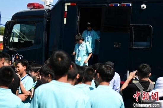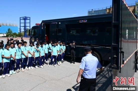 由北京市公安局支教民警組建并執(zhí)教的貴州黔西南州青少年校園足球男、女隊員共34人來到北京參加夏令營活動。今天,隊員們觀看特警訓練及警犬演示,現(xiàn)場體驗警械武器和警車等裝備使用,感受首都公安風采。