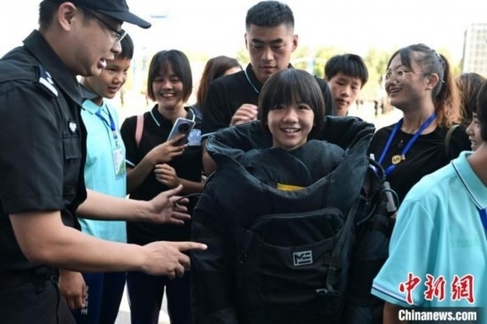 7月9日,隊員們觀看特警訓練及警犬演示,現(xiàn)場體驗警械武器和警車等裝備使用,民警講解安全防范知識。