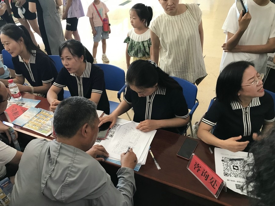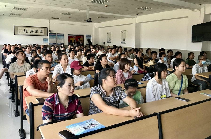 上午8:00,家長(zhǎng)和同學(xué)們陸續(xù)走進(jìn)學(xué)校。截至9:00,學(xué)校3個(gè)報(bào)告廳、教學(xué)樓二樓大廳、家長(zhǎng)接待室、校南門(mén)家長(zhǎng)咨詢點(diǎn),共接待家長(zhǎng)超1500人次。