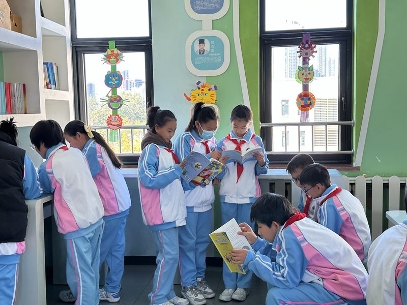 孩子們?cè)陂喿x區(qū)看書(shū)。