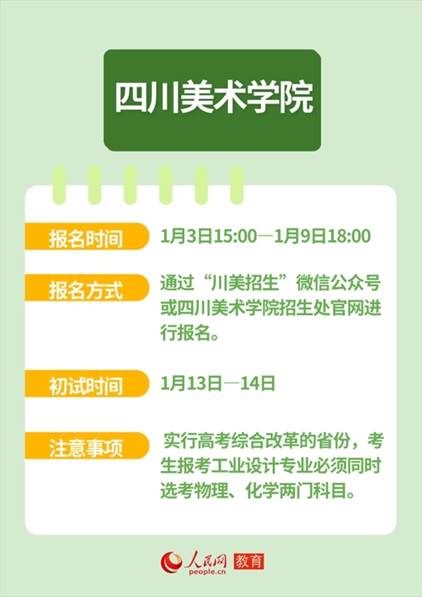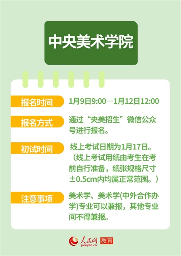 人民網(wǎng)北京1月12日電 近日,全國多所高校發(fā)布藝術(shù)類本科招生簡章,并明確藝考報名及初試時間。作為“新政”落地后的首次考試,2024年的“新藝考”備受關(guān)注。