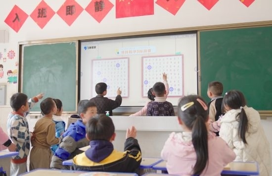 2023年12月20日,在云南省昭通市魯?shù)榭h卯家灣小學(xué),學(xué)生們通過智能雙師課堂,進行《注意力專項訓(xùn)練》課程的大屏互動。通訊員 鄭敬亭 攝