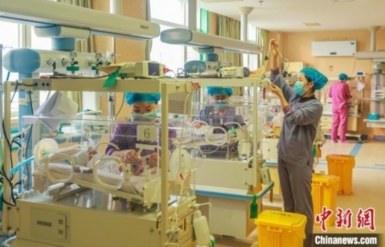 2月10日,在山東省榮成市婦幼保健院新生兒重癥監(jiān)護(hù)病房,醫(yī)護(hù)人員對(duì)新生兒患者進(jìn)行醫(yī)療護(hù)理。新生兒患者、早產(chǎn)兒等格外需要醫(yī)護(hù)人員的悉心治療與照顧。這里的醫(yī)護(hù)人員扮演著“媽媽”的角色,24小時(shí)守護(hù)著新生兒患者的生命健康。