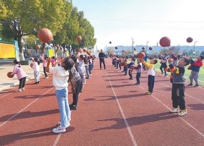 陶新明就在縣第五小學(xué)跟崗學(xué)習(xí)兩年,帶回了先進(jìn)的教學(xué)模式和理念?!霸诮搪?lián)體支持下,我們校區(qū)目前已有兩名專職體育老師。我們?cè)谡n后托管時(shí)間開(kāi)設(shè)社團(tuán)課,為有愛(ài)好和特長(zhǎng)的學(xué)生系統(tǒng)地開(kāi)設(shè)籃球、足球課,引導(dǎo)幫助他們?nèi)姘l(fā)展?!碧招旅髡f(shuō)。