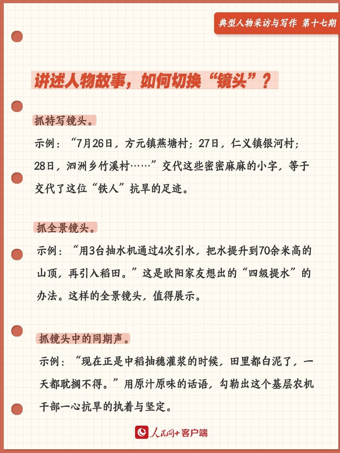 寫《“抗旱鐵人”歐陽家友》,在為如何用1500字以內(nèi)的篇幅、寫一個(gè)事跡并非驚天動(dòng)地的基層農(nóng)機(jī)干部而感到困惑時(shí),想到了“鏡頭”。于是,試著用幾個(gè)不同角度的“鏡頭”,串起歐陽家友的故事。