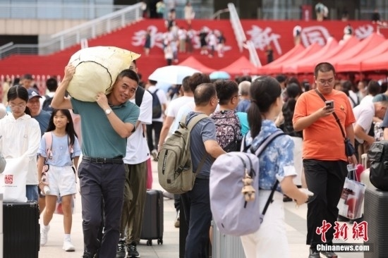 8月19日,北京大學(xué)迎來(lái)2024級(jí)新生報(bào)到。圖為家長(zhǎng)為學(xué)生搬運(yùn)行李。