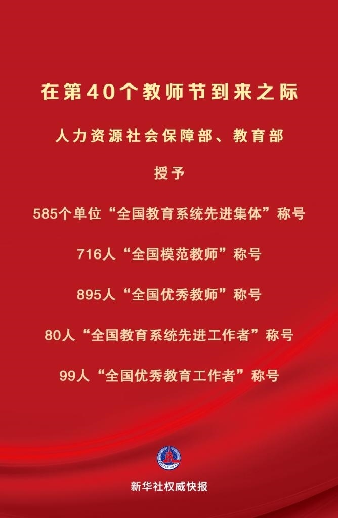 慶祝第40個教師節(jié) 全國585個單位、1790人受表彰