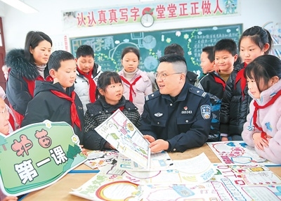 2月18日,在江蘇省如皋市下原鎮(zhèn)花園小學(xué),派出所民警通過知識普及、主題手抄報等形式,引導(dǎo)小學(xué)生科學(xué)、文明、安全上網(wǎng)。