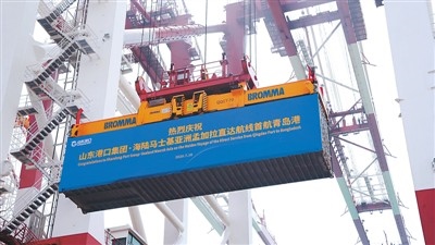 山東省港口集團(tuán)·海陸馬士基亞洲孟加拉直達(dá)航線首航青島港現(xiàn)場(chǎng)。資料圖片