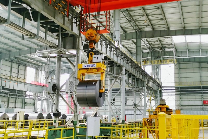 7月13日,內(nèi)蒙古包鋼全自動智慧工廠——包鋼集團金屬制造公司冷軋軋后庫內(nèi),吊運裝備正在對鋼卷進行吊運入庫。這家智慧工廠,共有6臺行車、5組步進梁、1組托盤運輸鏈和1臺過跨轉(zhuǎn)運平車。這座工廠采用的無人行車及智能庫管系統(tǒng),能夠通過模型算法實現(xiàn)行車智能調(diào)度、路徑規(guī)劃、垛位分配、自動避障、多車協(xié)作等功能,智能化完成5條生產(chǎn)線所生產(chǎn)鋼卷的下線入庫、上線出庫、庫內(nèi)倒垛等,實現(xiàn)軋后庫內(nèi)所有行車和地面設(shè)備的自動全無人作業(yè)和物料的實時跟蹤,是一座真正的24小時不用開燈的無人作業(yè)工廠。