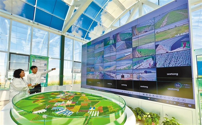 近日,巴彥淖爾市杭錦后旗二道橋鎮(zhèn)鄉(xiāng)村振興設(shè)施農(nóng)業(yè)產(chǎn)業(yè)園區(qū)工作人員正在記錄現(xiàn)代農(nóng)業(yè)數(shù)字平臺監(jiān)測數(shù)據(jù)。據(jù)悉,該園區(qū)占地2000畝,投資4600萬元,是集智慧農(nóng)業(yè)管理、引黃滴灌示范、集中連片種植等多項(xiàng)功能為一體的現(xiàn)代農(nóng)業(yè)產(chǎn)業(yè)園區(qū)。通過現(xiàn)代農(nóng)業(yè)數(shù)字平臺,進(jìn)行智能管控、農(nóng)產(chǎn)品質(zhì)量檢測、科技培訓(xùn)、遠(yuǎn)程科技指導(dǎo),同時(shí)讓更多的農(nóng)戶利用APP與平臺共享數(shù)據(jù)資源,實(shí)現(xiàn)田間自動化管理。園區(qū)通過平臺智能管控,今年第一茬種植麒麟西瓜,第二茬計(jì)劃種植葉菜類,兩茬畝均效益預(yù)計(jì)在2萬元以上。(記者 孟和朝魯 攝影報(bào)道)