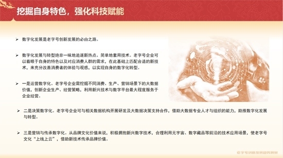 在數(shù)字化方面,《報告》提到,數(shù)字化發(fā)展與轉(zhuǎn)型絕非一味地追逐新熱點、簡單地套用技術(shù)。老字號企業(yè)可以著眼于自身的特色以及對應(yīng)消費人群的需求,在此基礎(chǔ)上匹配合適的新技術(shù),來充分改善消費者的體驗與觀感,以實現(xiàn)自身的數(shù)字化轉(zhuǎn)型。