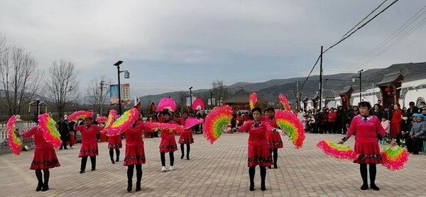 康樂(lè)縣魏家寨村文化廣場(chǎng)上,村民自發(fā)排練扇子舞。(受訪者供圖)