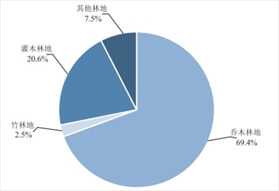 圖為2022年末全國(guó)林地結(jié)構(gòu)。來(lái)源:《2022年中國(guó)自然資源統(tǒng)計(jì)公報(bào)》