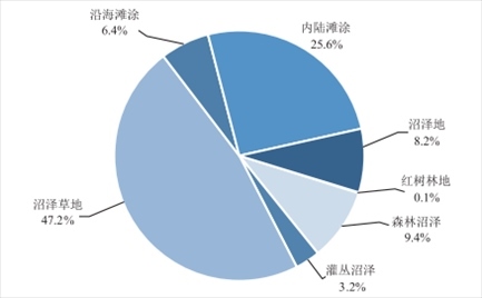 2022年度全國(guó)國(guó)土變更調(diào)查初步匯總結(jié)果顯示,全國(guó)共有濕地2357.3萬(wàn)公頃。其中,紅樹(shù)林地2.9萬(wàn)公頃,森林沼澤220.7萬(wàn)公頃,灌叢沼澤75.4萬(wàn)公頃,沼澤草地1112.9萬(wàn)公頃,沿海灘涂149.9萬(wàn)公頃,內(nèi)陸灘涂602.4萬(wàn)公頃,沼澤地193.2萬(wàn)公頃。