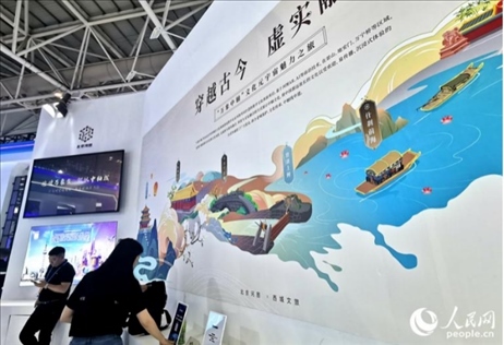 “我們對北京中軸線的場景進(jìn)行了復(fù)刻,構(gòu)筑了中軸線元宇宙,如果游客觀光北京中軸線上的打卡點(diǎn),用手機(jī)掃描眼前的景色,就會(huì)出現(xiàn)現(xiàn)實(shí)與虛擬交織的場景,仿佛穿越古今,置身于千百年前的時(shí)空?!北本┖訄D公司工作人員陳頌在展會(huì)現(xiàn)場介紹說。