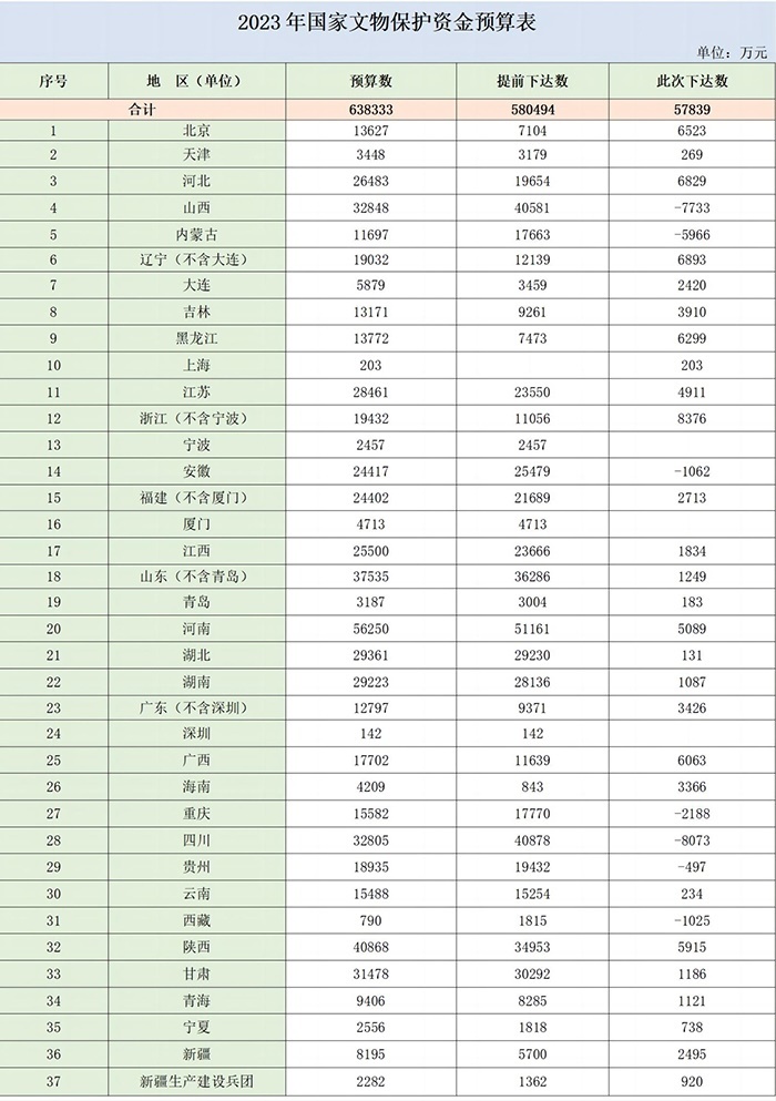 2023年國家文物保護(hù)資金預(yù)算表。圖片來源:財(cái)政部官網(wǎng)