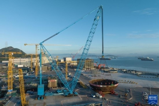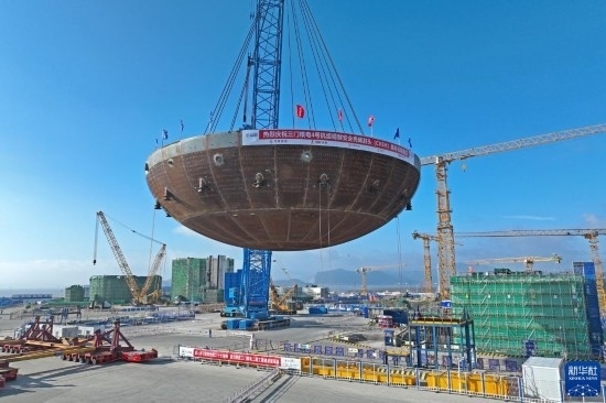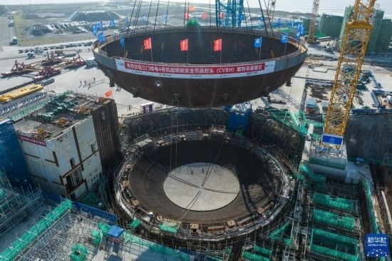 浙江三門核電二期工程4號(hào)機(jī)組核島鋼制安全殼底封頭吊裝就位