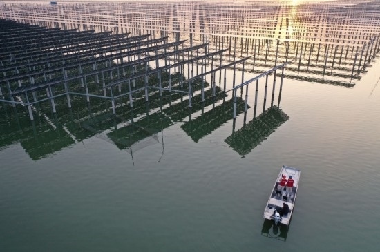 江蘇宿遷天崗湖,國(guó)網(wǎng)宿遷供電公司員工走進(jìn)光伏基地檢查發(fā)電上網(wǎng)設(shè)備(2月15日攝)。新華社發(fā)(王松竹攝)