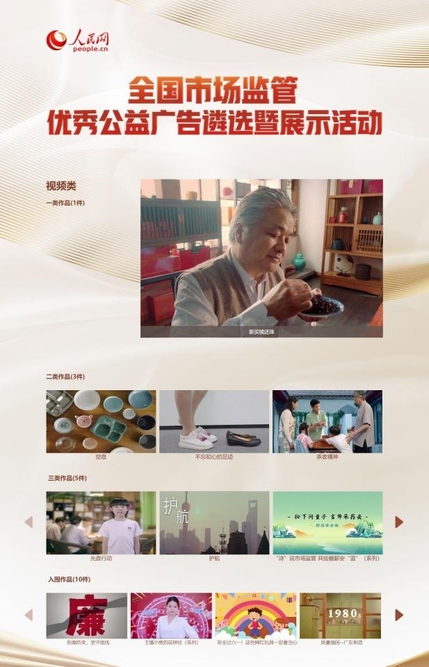 全國市場監(jiān)管優(yōu)秀公益廣告遴選暨展示活動(dòng)(頁面截圖)。