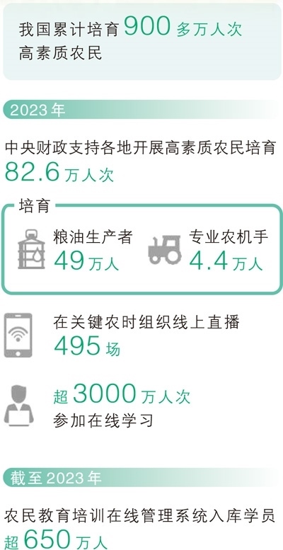 不久前,農(nóng)業(yè)農(nóng)村部辦公廳印發(fā)《關(guān)于做好2024年高素質(zhì)農(nóng)民培育工作的通知》,要求緊緊圍繞農(nóng)業(yè)農(nóng)村高質(zhì)量發(fā)展人才需求,堅(jiān)持需求導(dǎo)向、產(chǎn)業(yè)主線、分層實(shí)施、全程培育,聚焦提升技術(shù)技能水平、提升產(chǎn)業(yè)發(fā)展能力、提升綜合素質(zhì)素養(yǎng),培育糧食安全守護(hù)者、產(chǎn)業(yè)發(fā)展帶頭人和鄉(xiāng)村振興主力軍,為推進(jìn)鄉(xiāng)村全面振興、加快建設(shè)農(nóng)業(yè)強(qiáng)國提供堅(jiān)實(shí)人才保障。