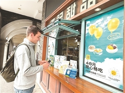 境外游客在浙江杭州西湖邊一家商鋪使用支付寶掃碼支付。新華社發(fā)
