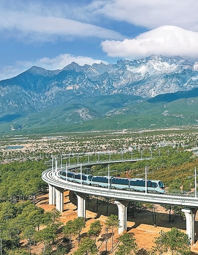 雪山、繁花與牧場,構(gòu)成了一幅美麗畫卷,令人陶醉其中?!帮L(fēng)景太美了!”游客賴先生是第二次來云南麗江,這次旅行他體驗(yàn)了麗江雪山觀光火車。自2月12日開通以來,麗江雪山觀光火車迅速成為旅游界的新“爆款”。這列由我國自主研發(fā)的全球首列全景觀光山地旅游列車,以其獨(dú)特的設(shè)計(jì)和舒適的體驗(yàn),為游客帶來一場別具一格的雪山之旅,更成為連接麗江古城與玉龍雪山的“黃金紐帶”。