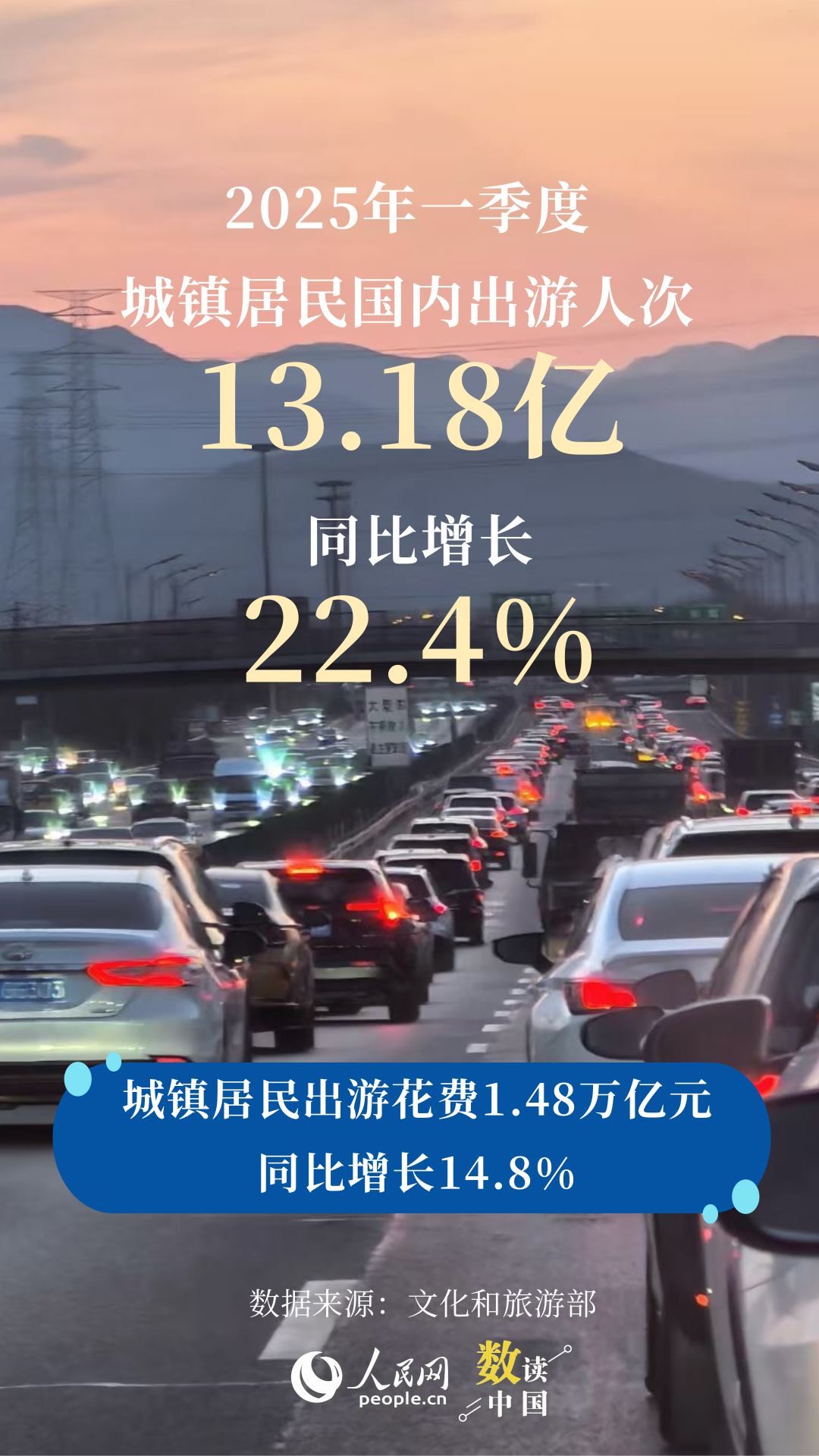 數(shù)據(jù)顯示,一季度,全社會跨區(qū)域人員流動量為173.9億人次,同比增長4.0%;一季度,國內(nèi)出游人次17.94億,比上年同期增加3.75億,同比增長26.4%。