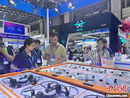 國(guó)外采購(gòu)商咨詢新型無人機(jī)。 記者 索有為 攝