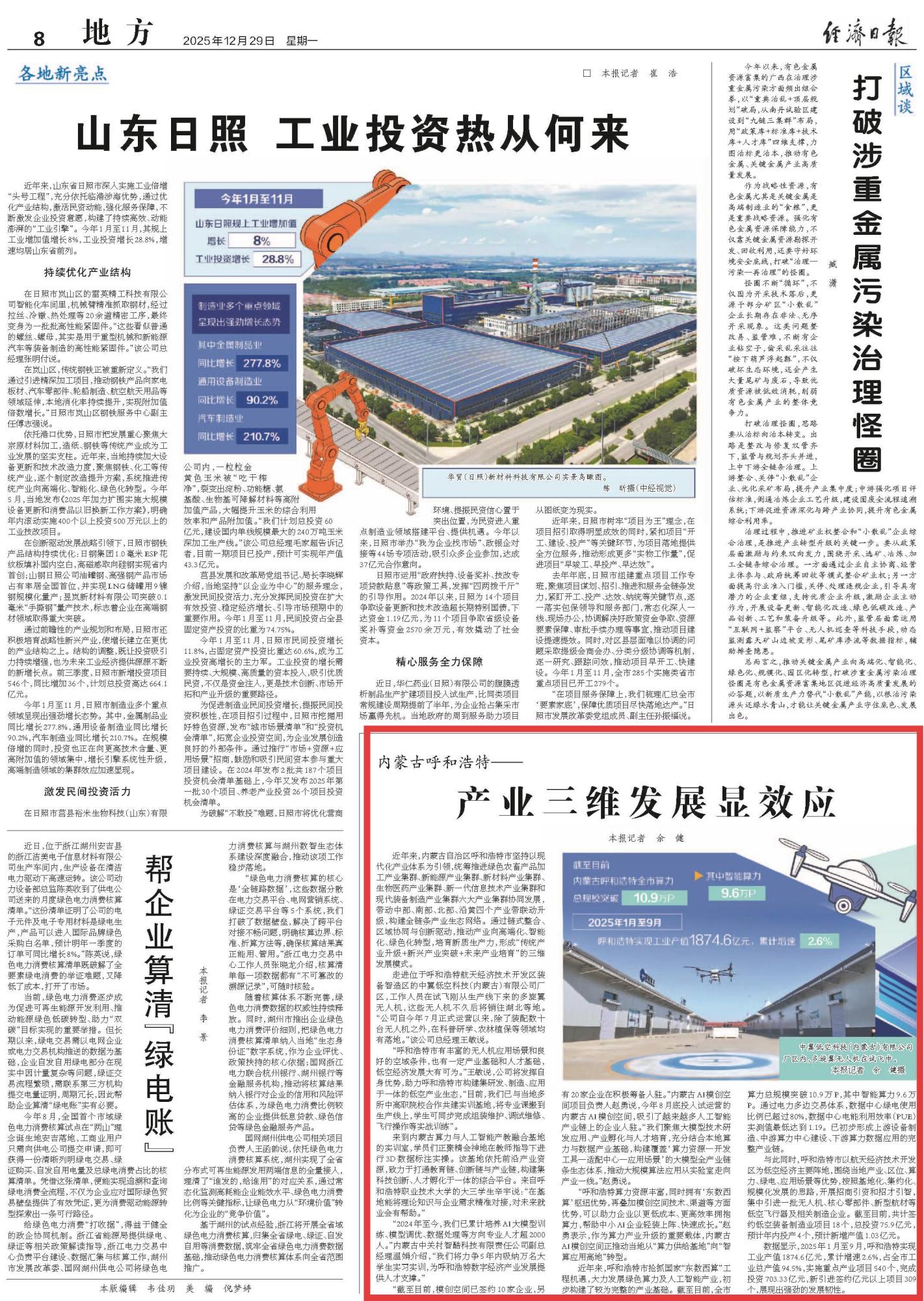 2025年12月29日,《經濟日報》第8版刊發(fā)題為《內蒙古呼和浩特——產業(yè)三維發(fā)展顯效應》的文章,報道了內蒙古自治區(qū)呼和浩特市堅持以現(xiàn)代化產業(yè)體系為引領,通過鏈式整合、區(qū)域協(xié)同與創(chuàng)新驅動,推動產業(yè)向高端化、智能化、綠色化轉型,培育新質生產力,形成“傳統(tǒng)產業(yè)升級+新興產業(yè)突破+未來產業(yè)培育”的三維發(fā)展模式。