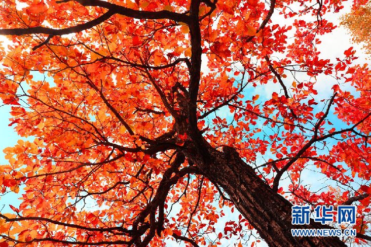 相思谷白樺林金黃色的樹葉在枝頭搖曳,襯托著遠處的松林綠葉。白樺樹下綻放著絢麗的紅葉,微風吹起便簌簌地飄落,仿佛若干的彩蝶在林間飛舞。(9月28日攝)新華網發(fā)(欒維敬 攝)