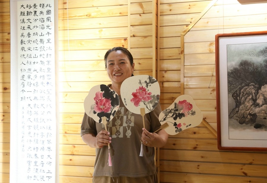 當(dāng)?shù)禺?huà)家展示創(chuàng)作的作品 記者 張偉攝影