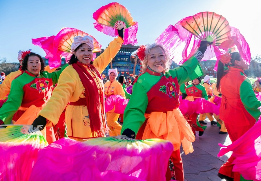 2024年2月15日,演員在呼和浩特新春文化廟會開幕式上表演。丁根厚 攝