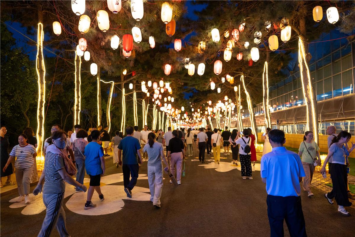 游客可在園中穿梭創(chuàng)意打卡點與景觀涼亭,欣賞璀璨燈光秀;在消費體驗區(qū)品嘗地道手把肉、奶茶等內(nèi)蒙古特色美食;與非遺代表性傳承人面對面互動,學習奶食品制作或皮畫技藝;登上觀景平臺俯瞰園區(qū),在星空屋體驗浪漫寧靜。