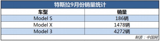 從單月成績來看,9月份,隨著特斯拉Model 3進口量的增加,特斯拉在該月進口數(shù)量約為0.43萬輛新車,同比大幅增長近287%。伴隨進口量的增加,特斯拉在國內(nèi)的銷量也有突出表現(xiàn),根據(jù)乘聯(lián)會9月份數(shù)據(jù)統(tǒng)計,特斯拉Model S的銷量為186輛;Model X的銷量為1478輛;Model 3的銷量為4272輛。詳情見下表: