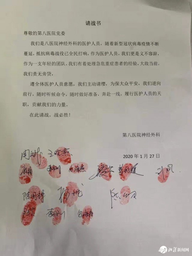 “在當(dāng)前抗擊新型冠狀病毒性肺炎的戰(zhàn)役中,我自愿申請(qǐng)參加醫(yī)院的各項(xiàng)救治工作,隨時(shí)接受黨組織和醫(yī)院安排的任務(wù),不計(jì)個(gè)人得失,無(wú)論生死,履行一名黨員、醫(yī)務(wù)工作者的責(zé)任?!边@是2月3日,記者在正值新婚燕爾的彭麗媛遞交的請(qǐng)戰(zhàn)書上看到的內(nèi)容。為了能沖到抗擊疫情最前線,她剪掉留了十多年的齊腰長(zhǎng)發(fā),寫好請(qǐng)戰(zhàn)書,報(bào)名參加包頭市第三批馳援湖北醫(yī)療隊(duì)員,這位女孩的舉動(dòng),一時(shí)間刷爆了包頭市第八醫(yī)院醫(yī)護(hù)人員的朋友圈?! ?/p>