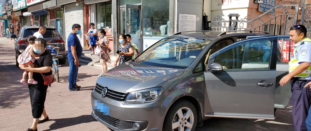 7月27日,呼倫貝爾市交管支隊(duì)海拉爾大隊(duì)河西中隊(duì)在執(zhí)勤過程中,發(fā)現(xiàn)有孩子被鎖在車內(nèi)哇哇大哭。