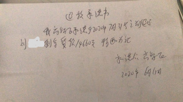 為了不耽誤婚房裝修,劉先生又在居然之家選擇了其他品牌的衛(wèi)浴,并向高經(jīng)理提出退回未付貨的14660元貨款。但高經(jīng)理表示最近手里沒錢,不過,他答應(yīng)劉先生,在7月31日前會全部退還,并且當(dāng)場寫了一個退款承諾書。