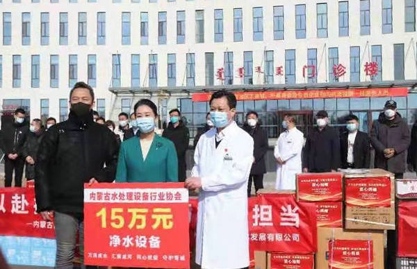2月25日,由內(nèi)蒙古自治區(qū)工商聯(lián)組織,內(nèi)蒙古水處理設(shè)備行業(yè)協(xié)會(huì)聯(lián)合山東省凈水專委會(huì),向內(nèi)蒙古第三醫(yī)院捐贈(zèng)價(jià)值15萬凈水設(shè)備和100件蘇打水。當(dāng)天,內(nèi)蒙古自治區(qū)黨委統(tǒng)戰(zhàn)部副部長、自治區(qū)工商聯(lián)黨組書記梁淑琴,內(nèi)蒙古自治區(qū)工商聯(lián)黨組成員白春艷,一級(jí)巡視員屈晨然、二級(jí)巡視員呂萬海、武軍等出席捐贈(zèng)活動(dòng)。