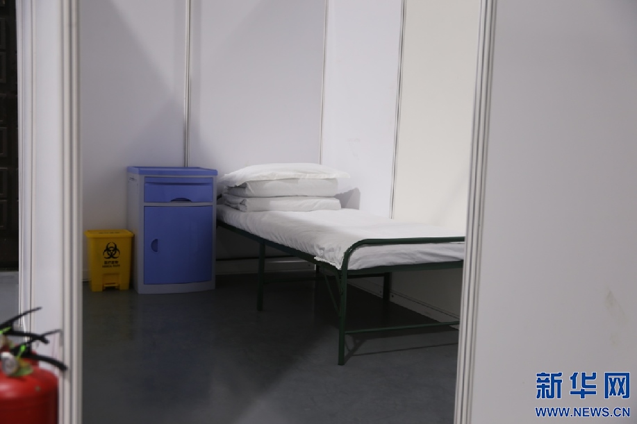 方艙庇護醫(yī)院隔間內(nèi)配備行軍床、床頭柜、垃圾桶等,可滿足隔離患者基本居住需求。(新華網(wǎng) 李倩)