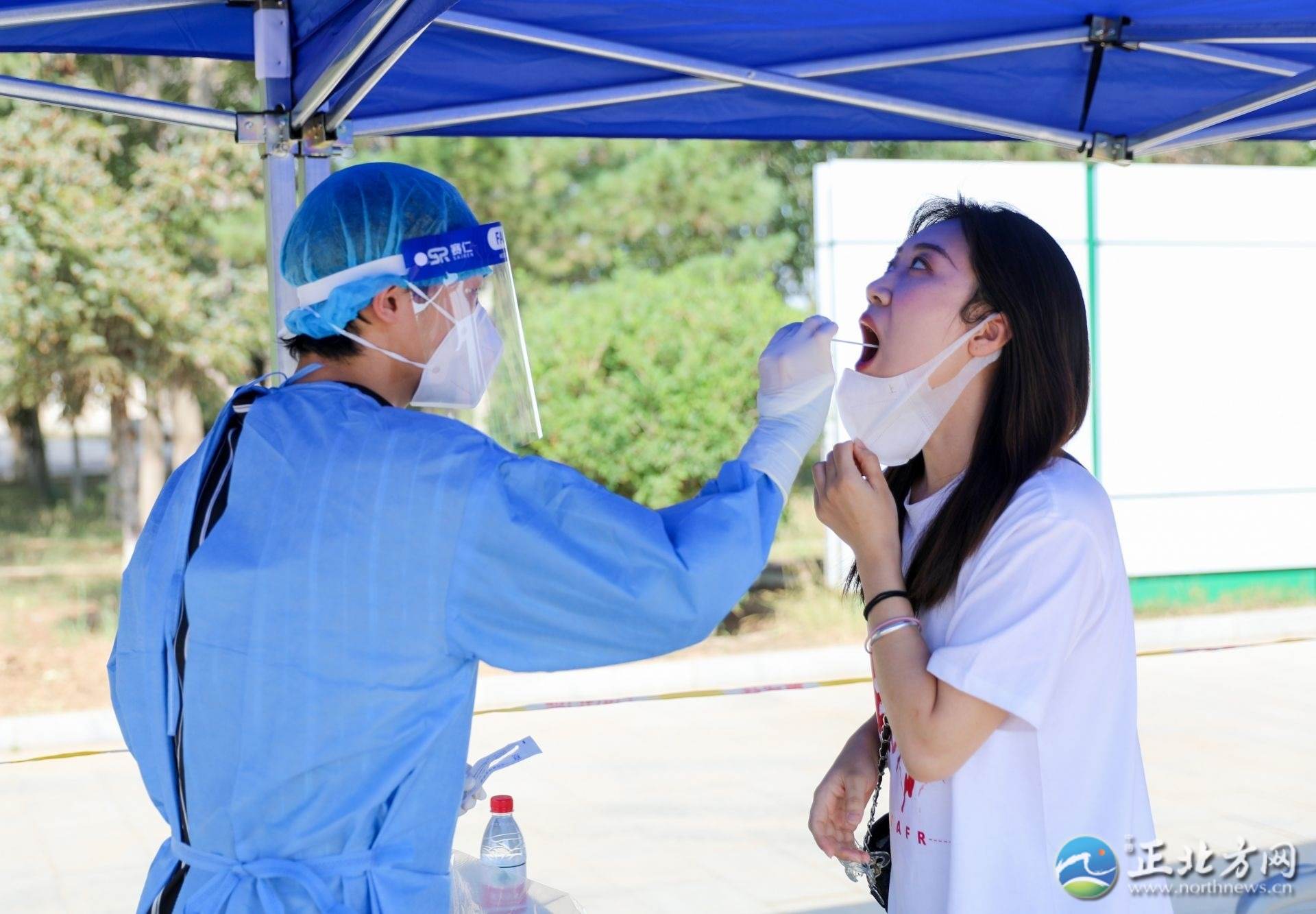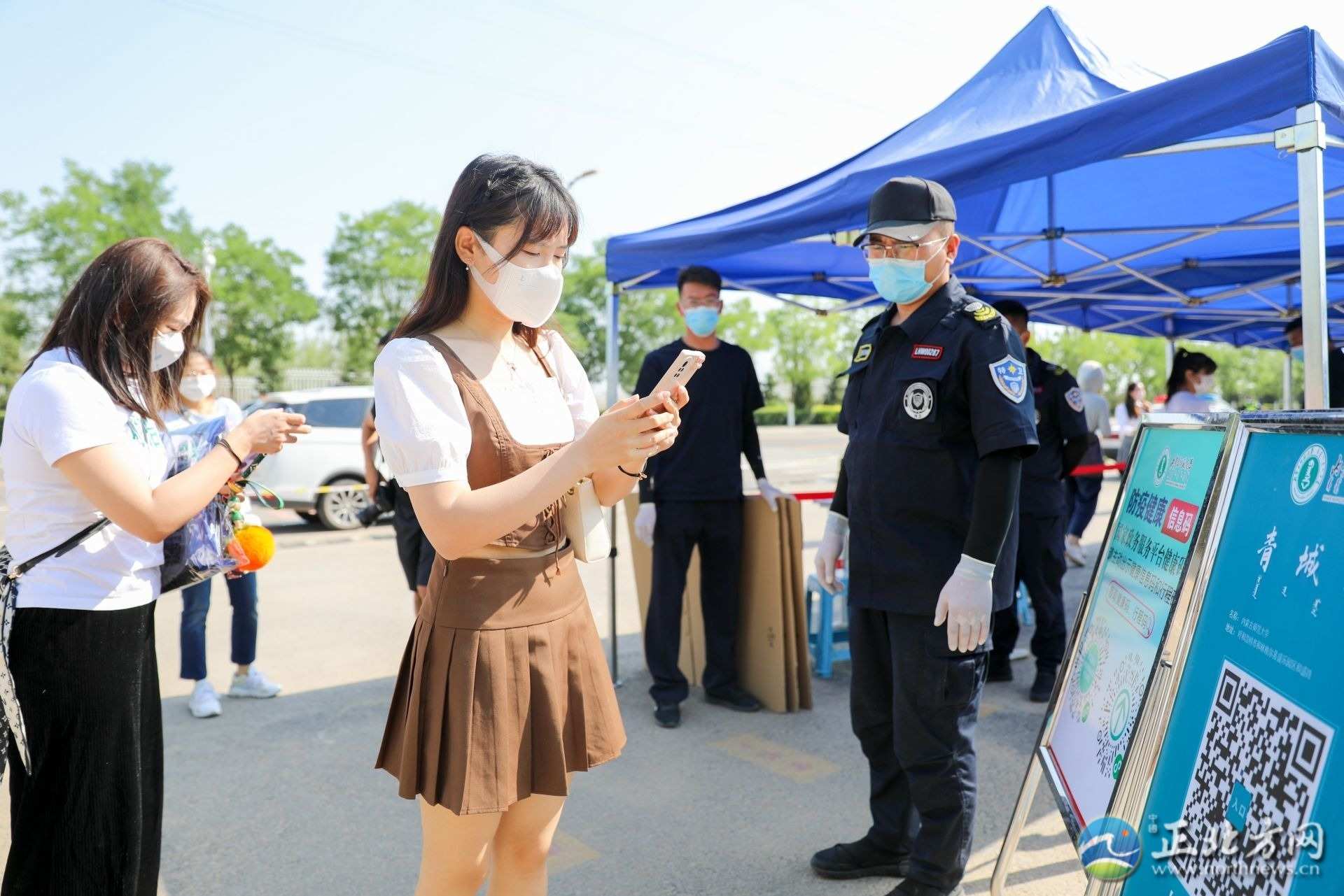 記者看到,在學校門口,學校設立了返校專用通道,核對信息、測溫、消毒、查看健康碼、行程碼和核酸檢測……返校學生佩戴著口罩正在按入校流程有序進入校園,工作人員不斷提醒學生注意保持一米安全距離。進入校園后,學生還需現(xiàn)場進行核酸檢測。