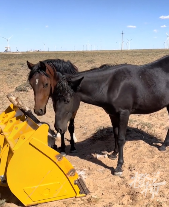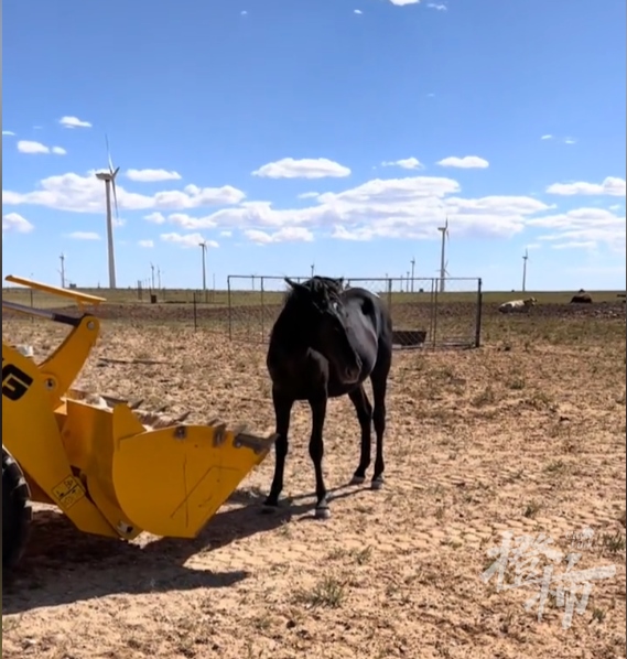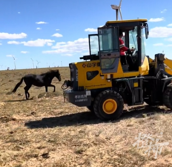 橙柿互動(dòng)留意到,視頻內(nèi)容顯示:一匹老馬躺在車(chē)斗里,車(chē)前車(chē)后,有兩匹馬兒在圍追這輛鏟車(chē),甚至擋住車(chē)斗,鏟車(chē)被迫多次停下。