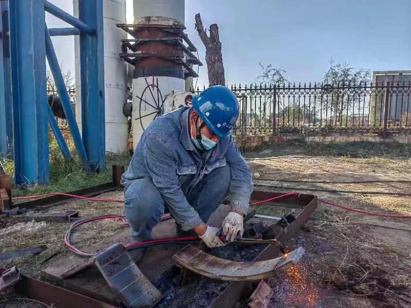 設(shè)備部檢修人員在檢查中發(fā)現(xiàn)供熱管道有三處堵板輕微變形,這會給今冬的安全穩(wěn)定供熱帶來極大隱患,必須馬上加固處理,對法蘭及螺栓進(jìn)行全部焊接。焊接工作量很大,時間又緊,設(shè)備部馬上抽調(diào)4名焊工組成“焊接小分隊”加班加點展開搶修。氣溫已降到個位數(shù),寒風(fēng)中點點焊光閃耀,他們只想趕緊保質(zhì)保量的完成任務(wù),顧不上寒風(fēng)刺骨。設(shè)備黨支部書記安正平帶領(lǐng)支委和黨員成立了黨員突擊隊及時支援,解決了熱網(wǎng)檢修現(xiàn)場人員和技術(shù)力量不足的困境。