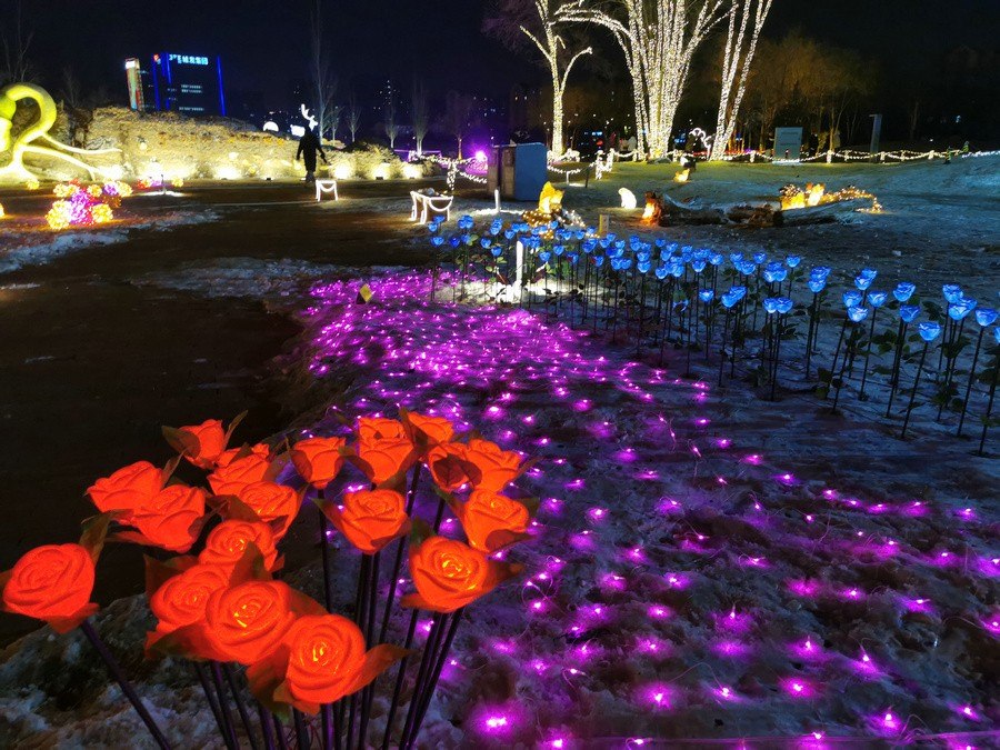 用玫瑰花燈組成的“我愛呼和浩特”字樣格外引人注目,象征著我們要熱愛我們的城市,共同打造一個美好、有愛、有溫度的呼和浩特。
