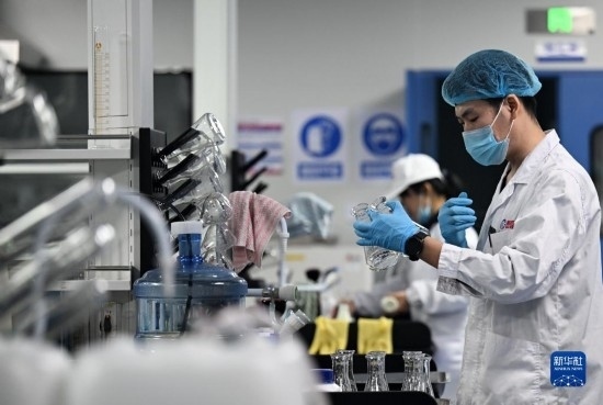 在天津海河乳品有限公司創(chuàng)新研發(fā)中心,工作人員在對(duì)產(chǎn)品進(jìn)行檢測(cè)(2月20日攝)。