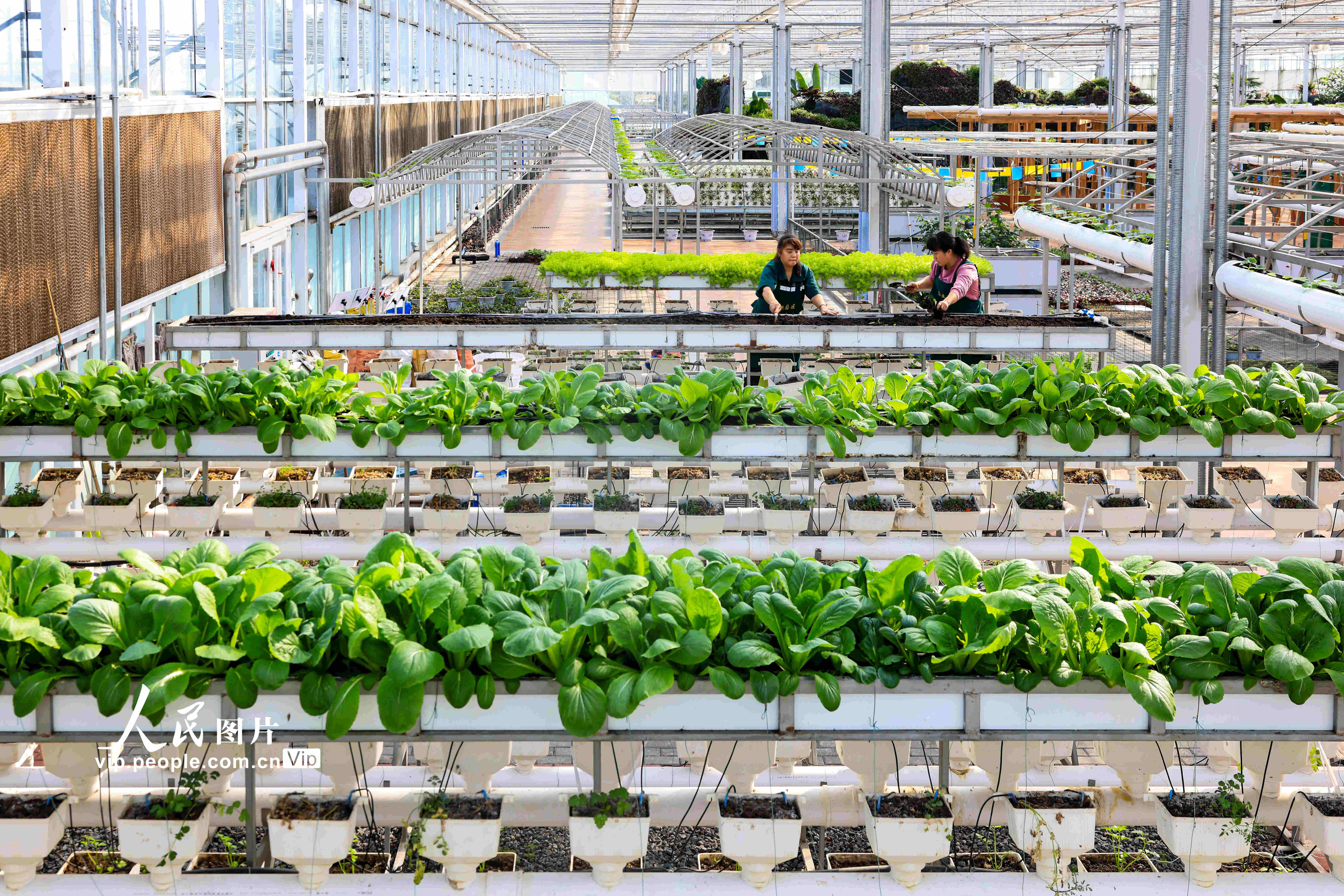 2023年2月26日,在四川省瀘州市江陽區(qū)現(xiàn)代農(nóng)業(yè)園區(qū)的高科技溫室種植大棚內(nèi),工人們忙著養(yǎng)護栽種的蔬菜。張若涵攝(人民圖片網(wǎng))