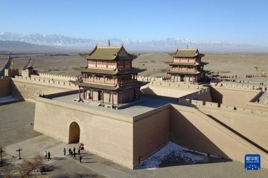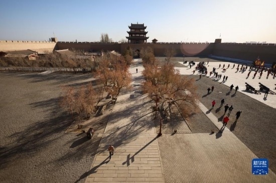 3月4日,游客在嘉峪關(guān)關(guān)城景區(qū)參觀游覽(無(wú)人機(jī)照片)。