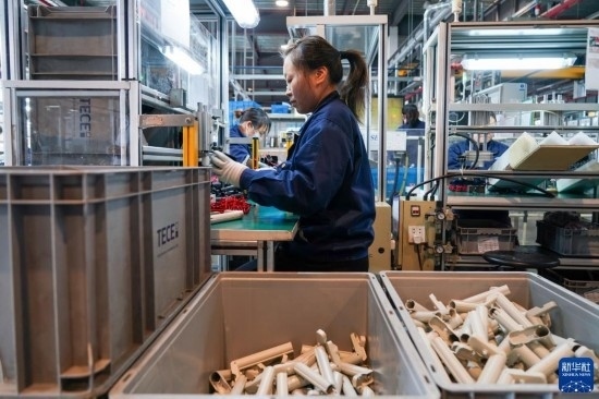 工人在位于太倉市高新區(qū)的帝希潔具系統(tǒng)(蘇州)有限公司生產車間內進行加工作業(yè)(3月16日攝)。