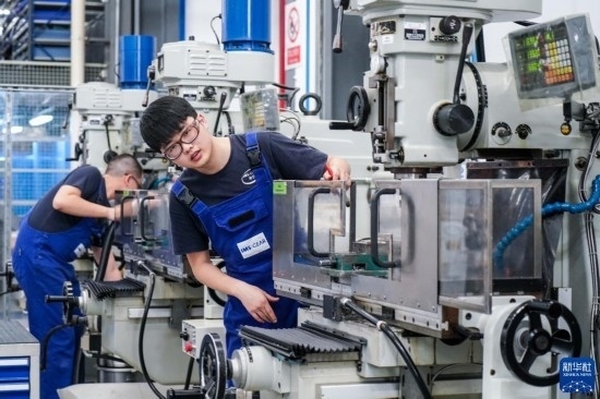 工人在位于太倉市高新區(qū)的億邁齒輪(太倉)有限公司生產車間內進行加工作業(yè)(3月14日攝)。